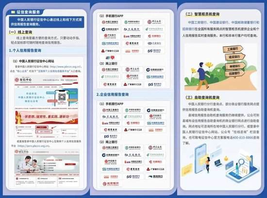 对于征信查询服务,中国人民银行征信中心列出线上+线下多种渠道。其中,线上可通过征信中心网站的“个人信用信息服务平台”,手机银行APP(、、、、、邮储银行、、、、、、、、、、云闪付),网上银行进行查询。电话客服并不提供个人信用报告查询服务。