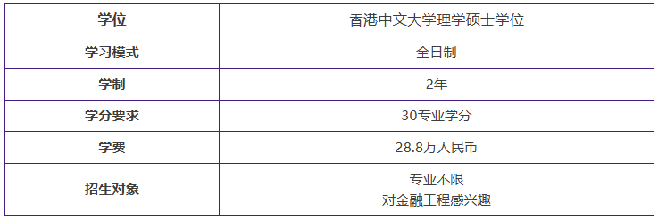 香港中文大学(深圳)金融工程硕士理学项目创立于2015年,是数据科学学院与香港中文大学工程学院合办的全日制授课型学位课程项目。